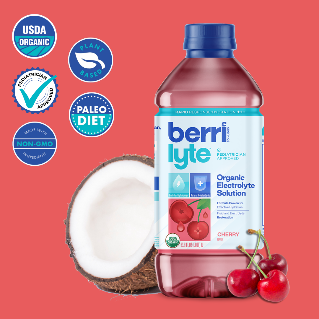 Discover the Power of Clean Hydration with Berri Lyte: the World's 1st natural, plant-based, and highly effective oral electrolyte solution. Our USDA Organic formula is 100% Vegan and Non-GMO, ensuring you get the purest hydration. Say goodbye to artificial sweeteners, dyes, and additives found in other over processed brands.