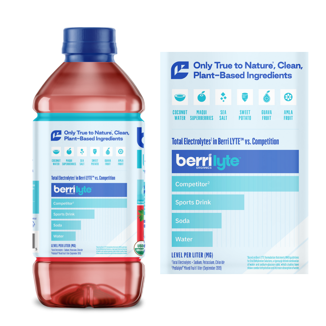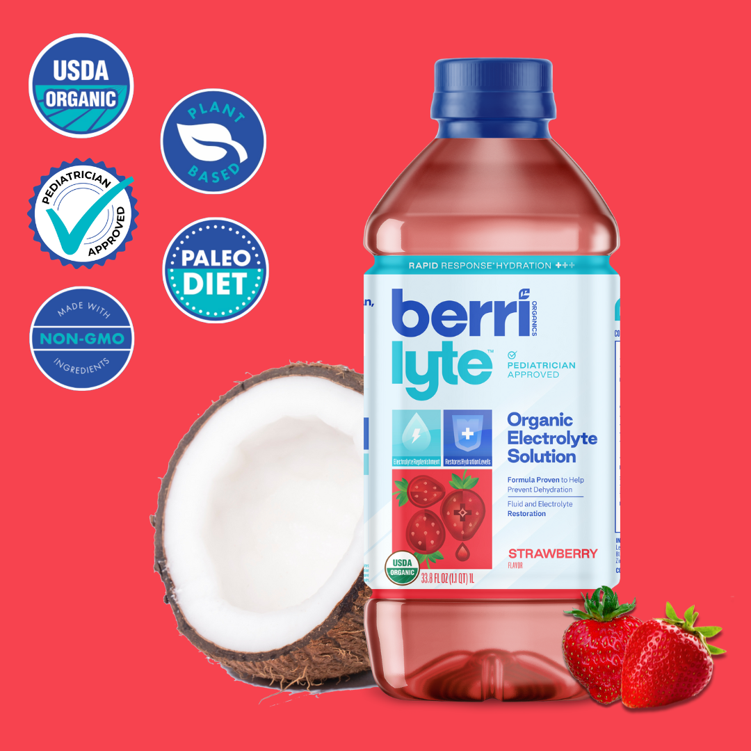Discover the Power of Clean Hydration with Berri Lyte: the World's 1st natural, plant-based, and highly effective oral electrolyte solution. Our USDA Organic formula is 100% Vegan and Non-GMO, ensuring you get the purest hydration. Say goodbye to artificial sweeteners, dyes, and additives found in other over processed brands.