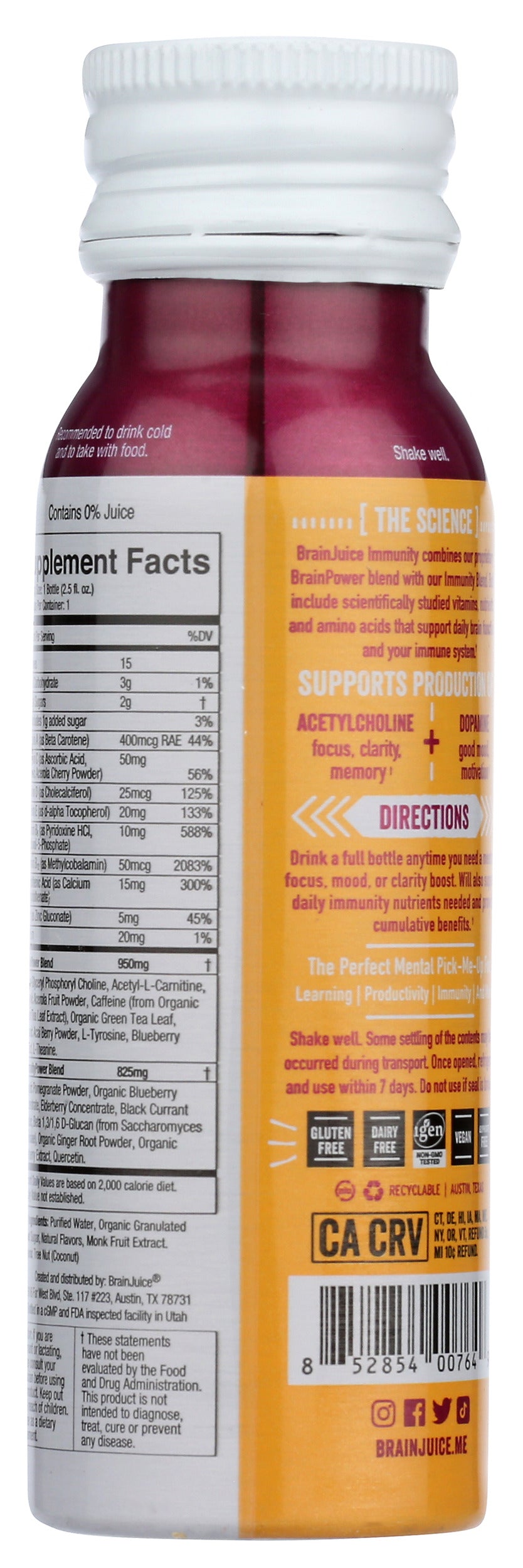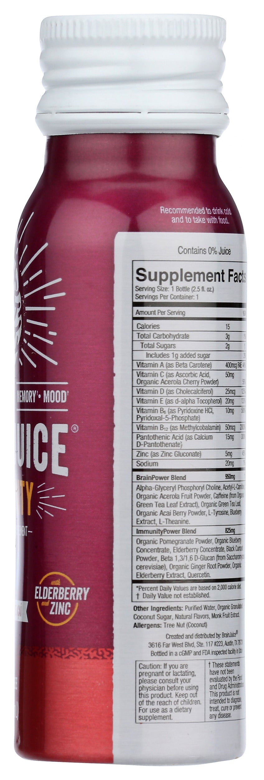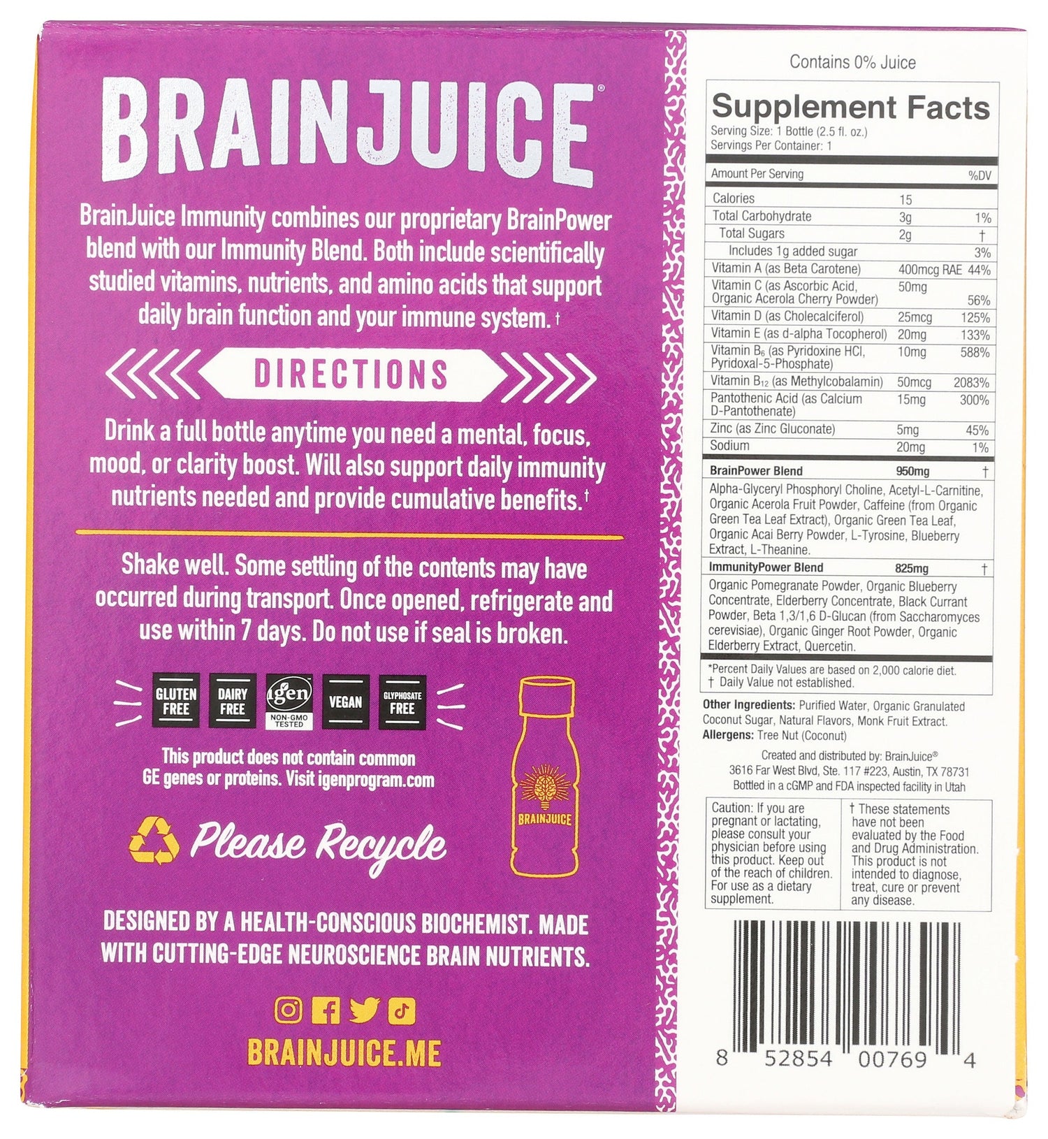 BrainJuice Immunity Pomegranate Acai 2.5 oz. Ready to Drink Supplement | 12-pack