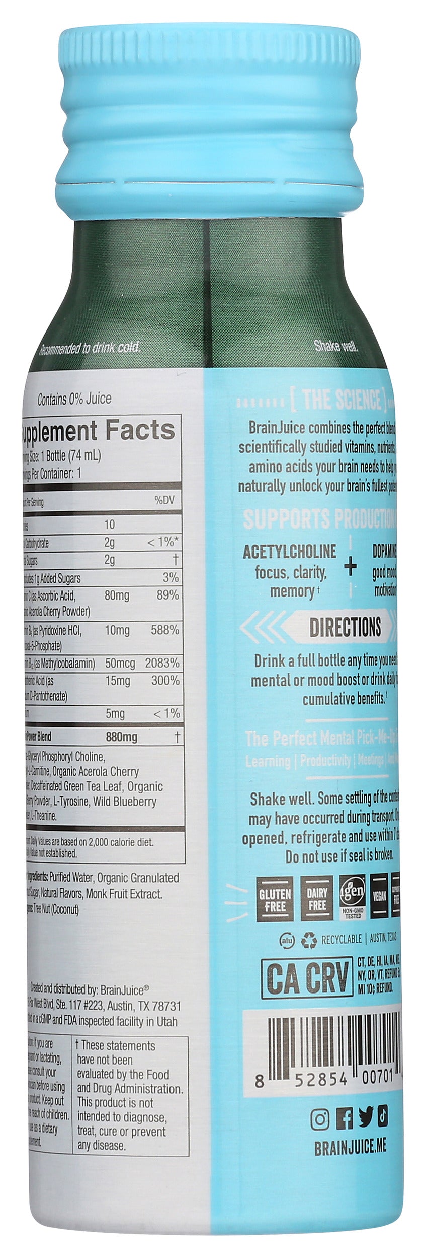 BrainJuice Decaf Peach Mango 2.5 oz. Ready to Drink Supplement | 12-pack is backordered and will ship as soon as it is back in stock.