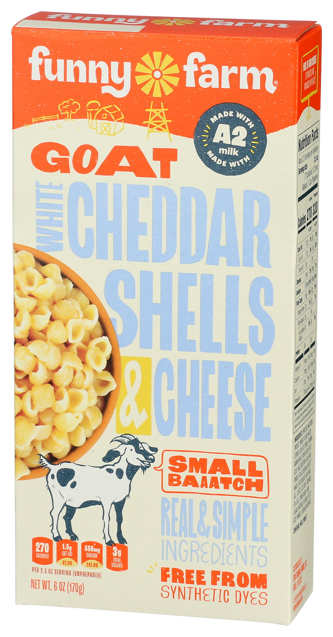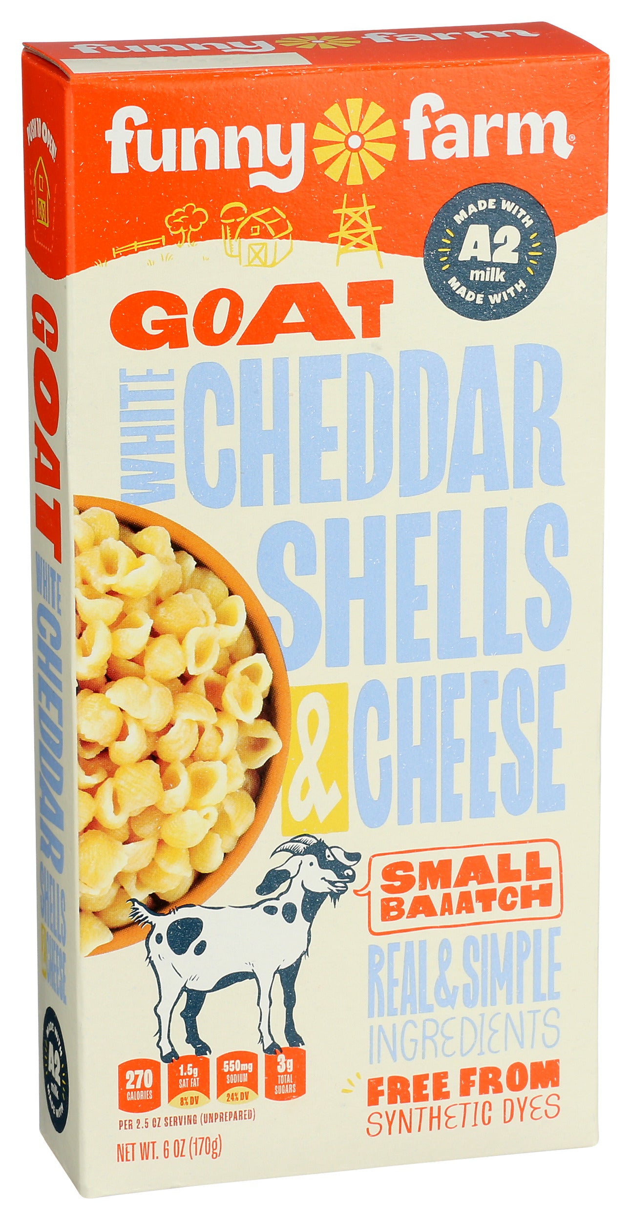 Funny Farm Goat White Cheddar Shells & Cheese, 6 z, 8 Pack