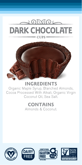 Satisfy your chocolate cravings with this healthy no-bake sweet snack that is entirely grain-free, paleo-friendly, and dairy-free. Our mini Cups are bite-sized treats you can feel good about. Crafted with a rich vegan dark chocolate ganache inside a gluten-free dark chocolate almond flour crust. They’re cute, they’re mini, and made entirely of plants.