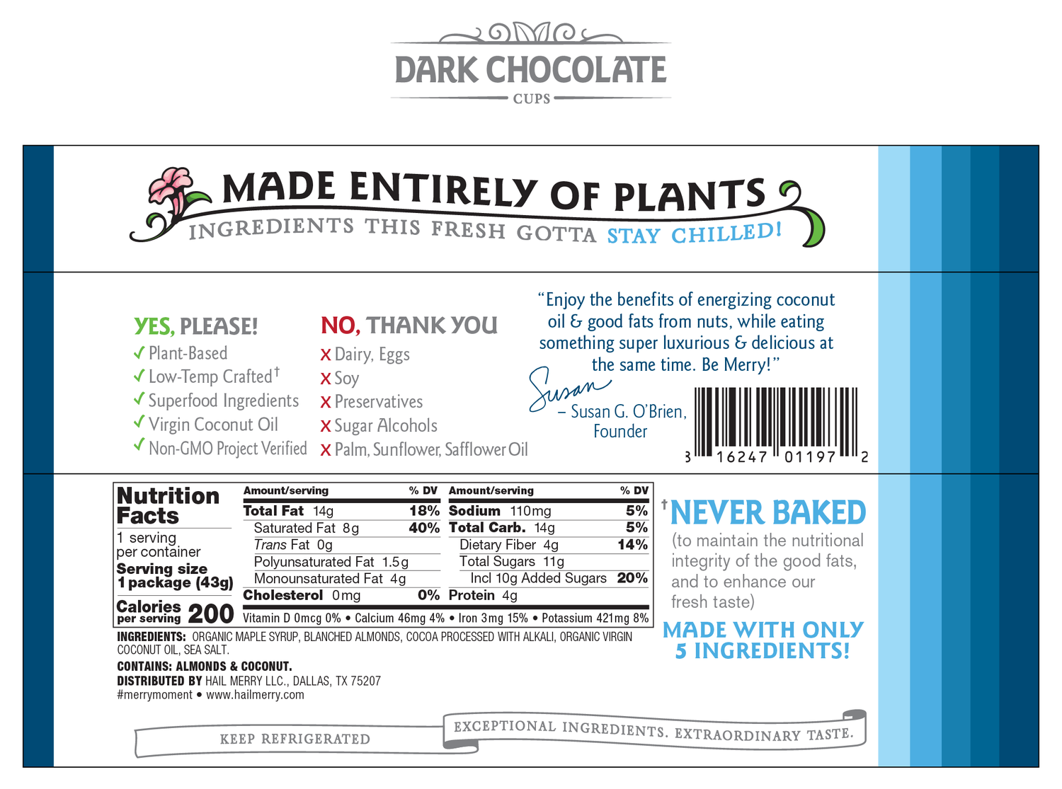 Hail Merry, Dark Chocolate Cups (2 count), 1.5 oz, Pack of 12 is backordered and will ship as soon as it is back in stock.