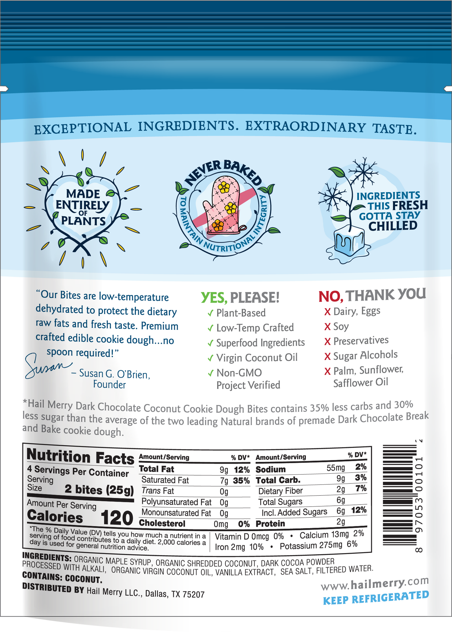 Hail Merry, Dark Chocolate Coconut Cookie Dough Bites, 3.5 oz, Pack of 8