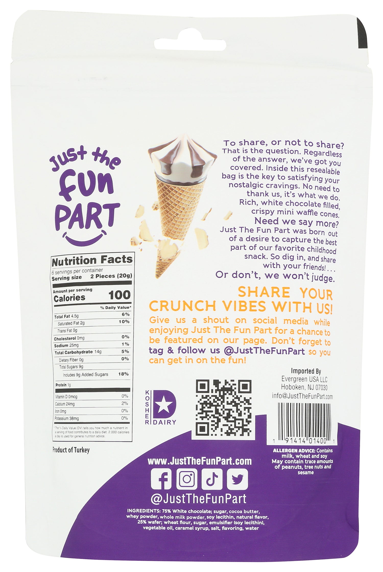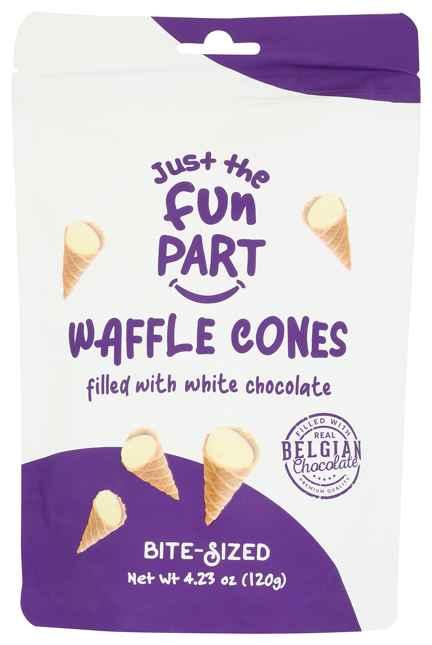 Just The Fun Part, Bite-Size Crispy Mini Waffle Cones With Premium Belgian White Chocolate, 4.23 Oz (Pack of 6)