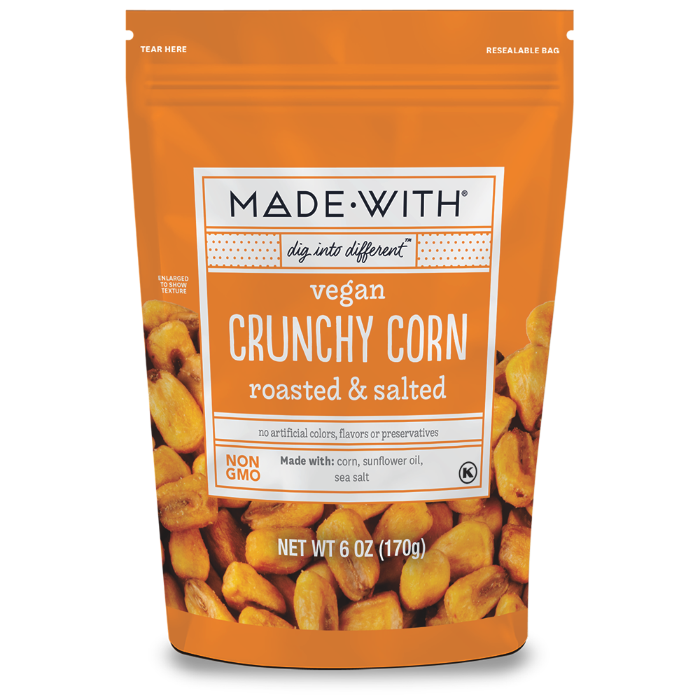 Savor the quintessential crunch of Made•With® Roasted Salted Vegan Corn Nuts, an epitome of plant-based snacking that tantalizingly combines traditional flavor with vegan sensibilities.