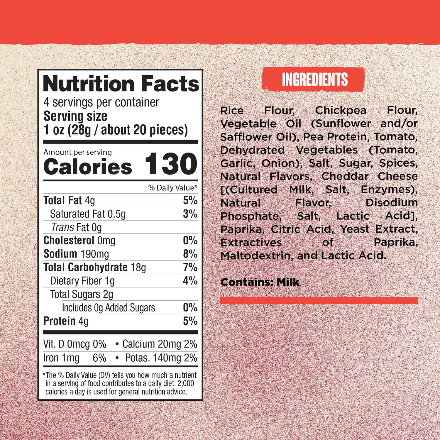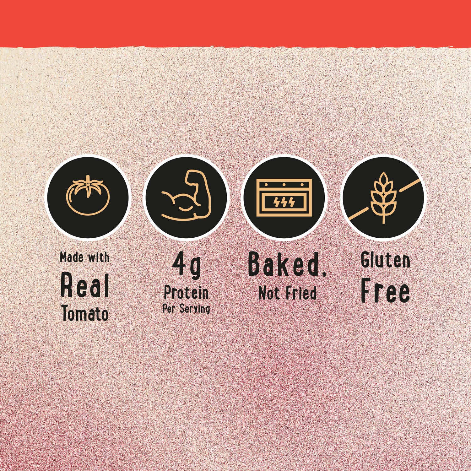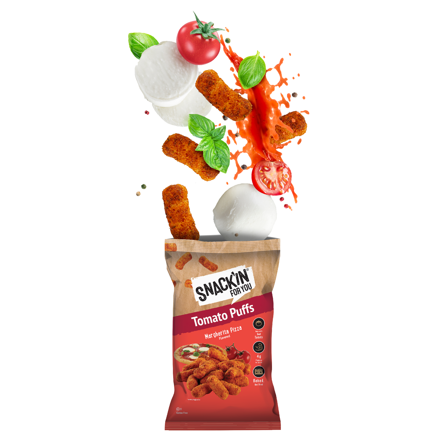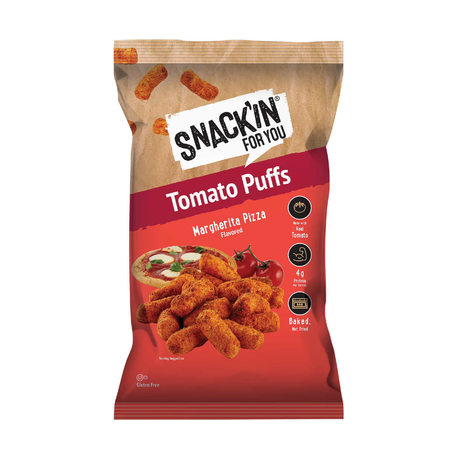 Crunchy puffs made with 4 simple base ingredients: Tomato, Rice Flour, Chickpea, Pea Protein
