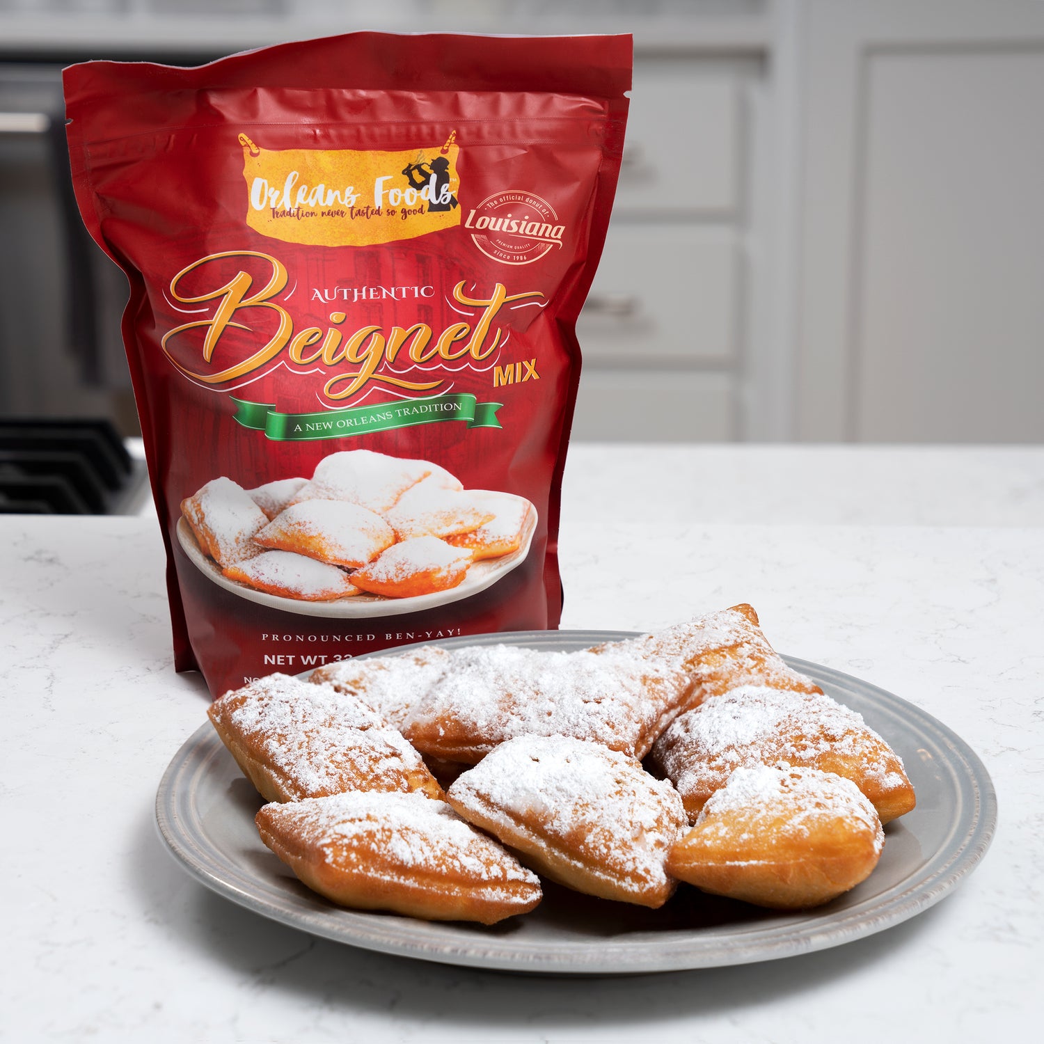 Looking for a tasty treat to make at home? If you can make a pancake mix, you can make beignets! Beignets (pronounced “ben yay”), or French donuts, are known as the State Donut of Louisiana. These light, airy pillows of choux pastry are famous for their crispy outside and soft insides. Orleans Foods Authentic Beignet Mix makes beignets that taste like little vanilla flavored bites of love!