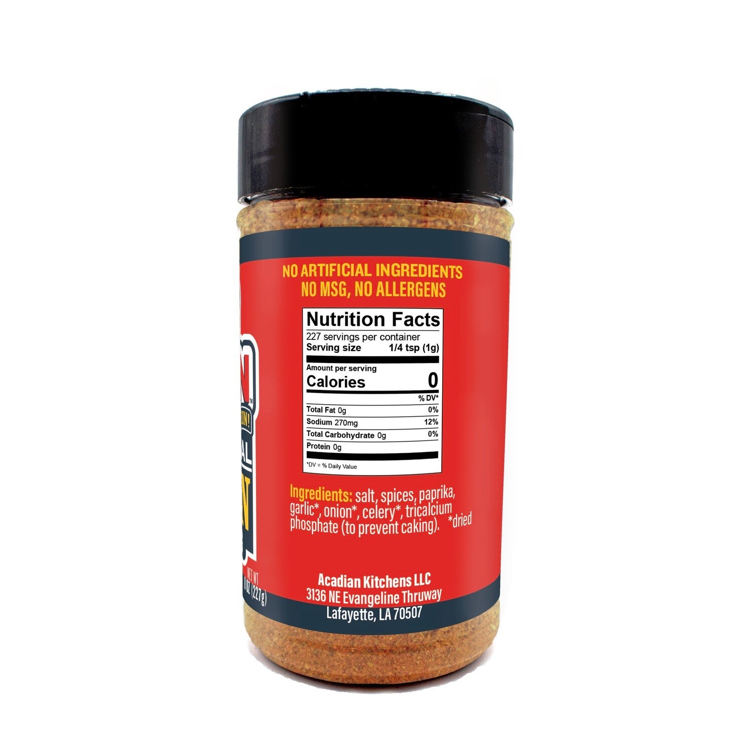 Ragin' Cajun's famous Cajun Seasoning has been famous for years. It's the taste our customers have come to love and now you can too. Use it anywhere you'd normally use salt and pepper. Shake it on everything! For those of you watching your intake of sodium, our Cajun Seasoning actually has LESS SODIUM than other all-purpose seasonings. Hand-crafted in Lafayette, Louisiana.