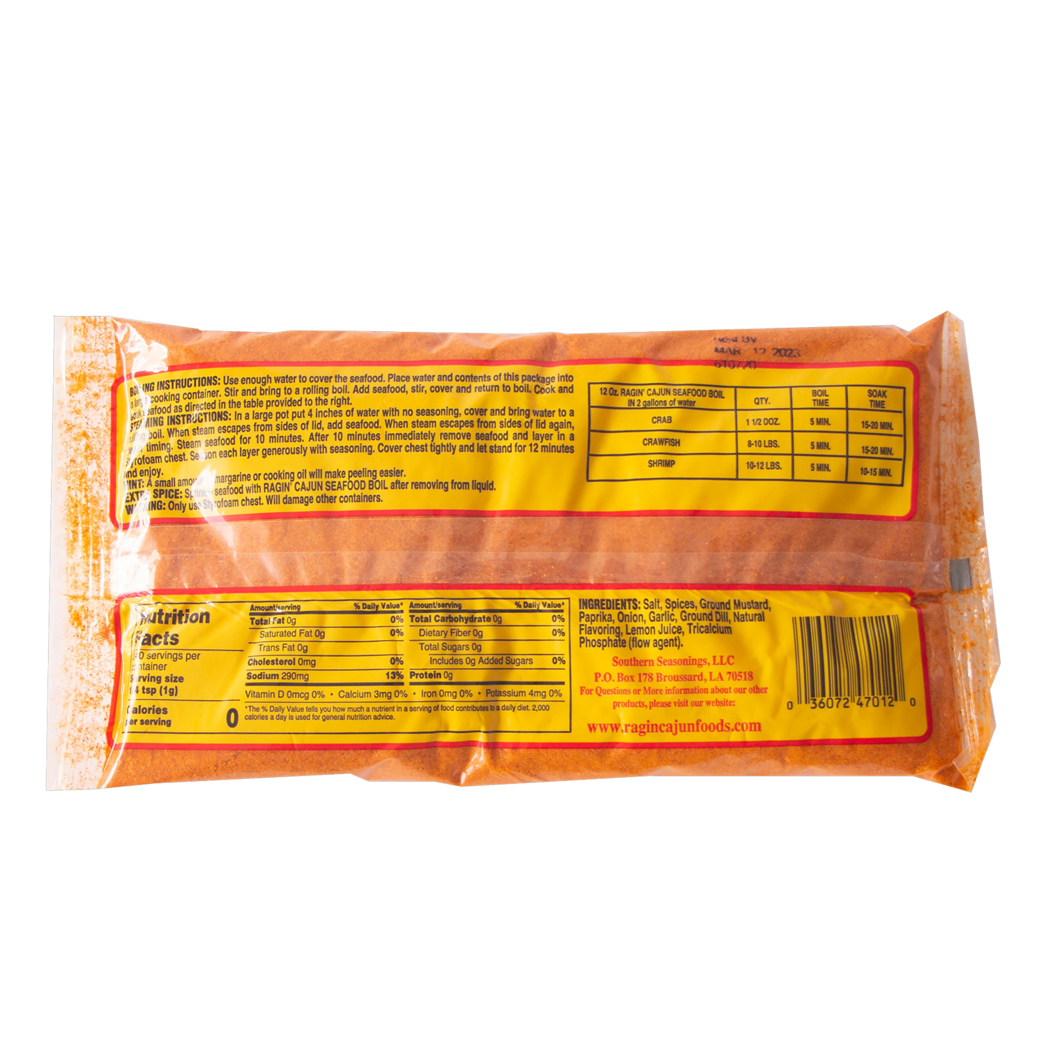 One of our hottest items during crawfish season, Ragin' Cajun Crawfish Boil is a southern favorite for boiling your shrimp, crabs, and crawfish. Use a lot to make 'em hot, or a bit less if you enjoy your seafood lightly seasoned. The coast boasts about Ragin' Cajun Boil! No MSG, All Natural, Gluten & Allergen Free. Hand-crafted in Lafayette, Louisiana.
