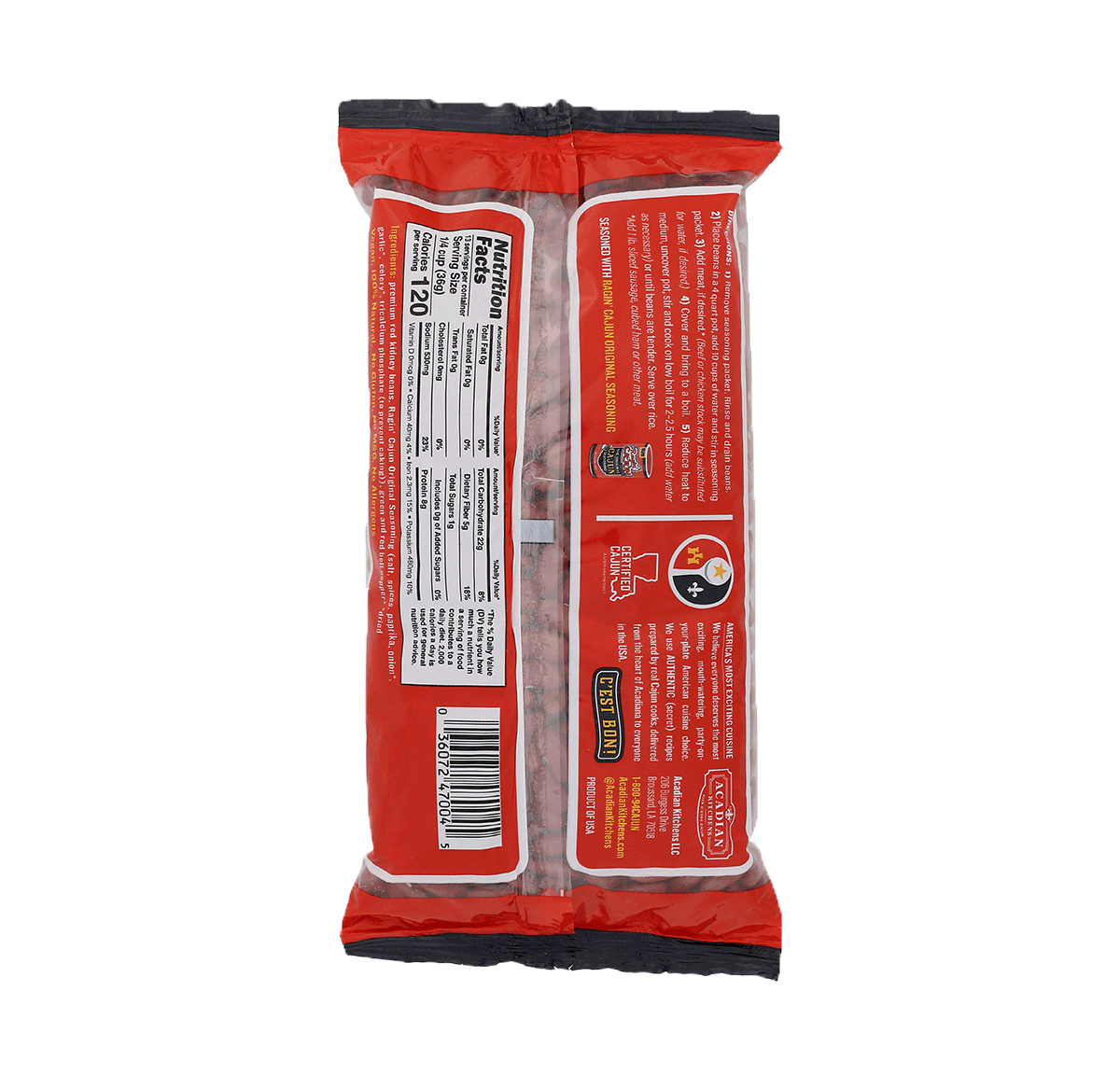 This blend of red kidney beans with vegetables and Cajun seasonings forms this version of a south Louisiana classic. It can be served by itself or over rice for a complete meal in itself. Consisting of 12 different seasonings. Fat Free, All Natural, Reduced Sodium, Gluten Free. Hand-crafted in Lafayette, Louisiana.