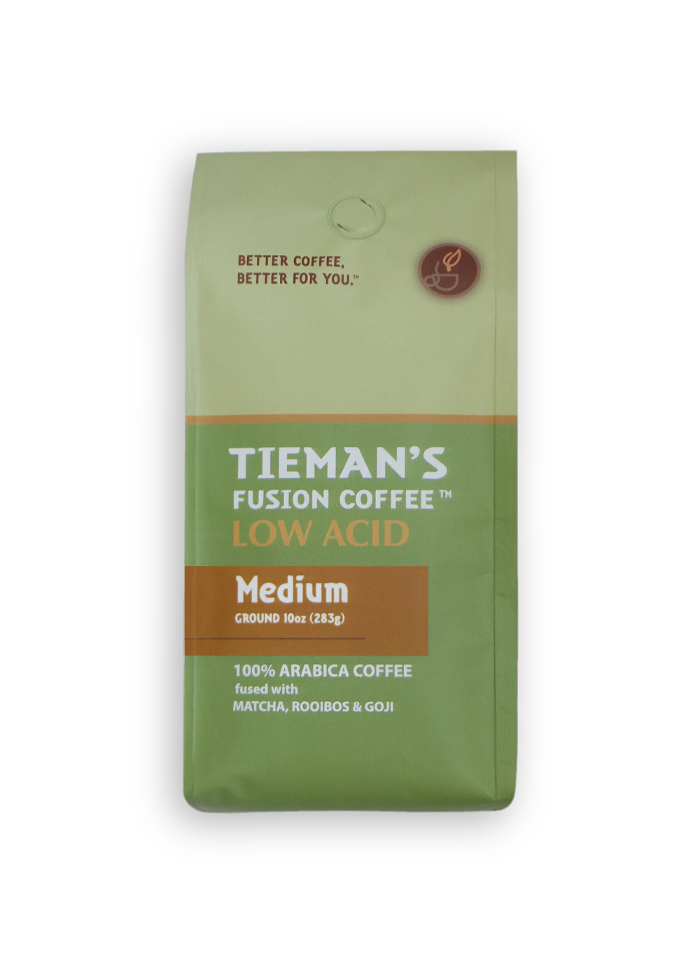 Tieman’s Medium Fusion, is the coffee that started it all, it is so popular that we now fuse ALL our coffees with Goji! Our selection of Arabica coffee is fused with Matcha Green Tea, Rooibos Red Tea, and Goji Berry powders. You should try it iced! And yes, loaded with antioxidants and other great properties. Low Acid ph 5.84%. Caffeine content 68.66 mg per 8oz. 100% Natural, Whole Super food Antioxidants