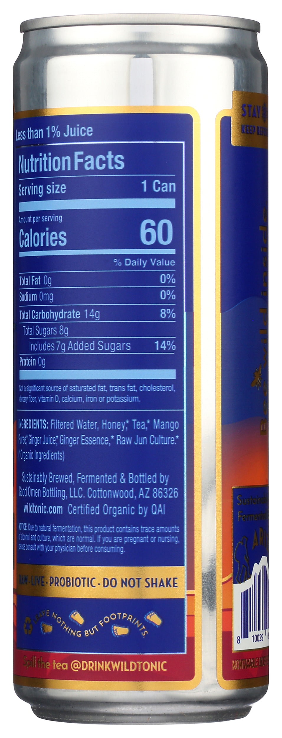 Wild Tonic, Kombucha Mango Ginger Organic 12 oz, 6 Pack