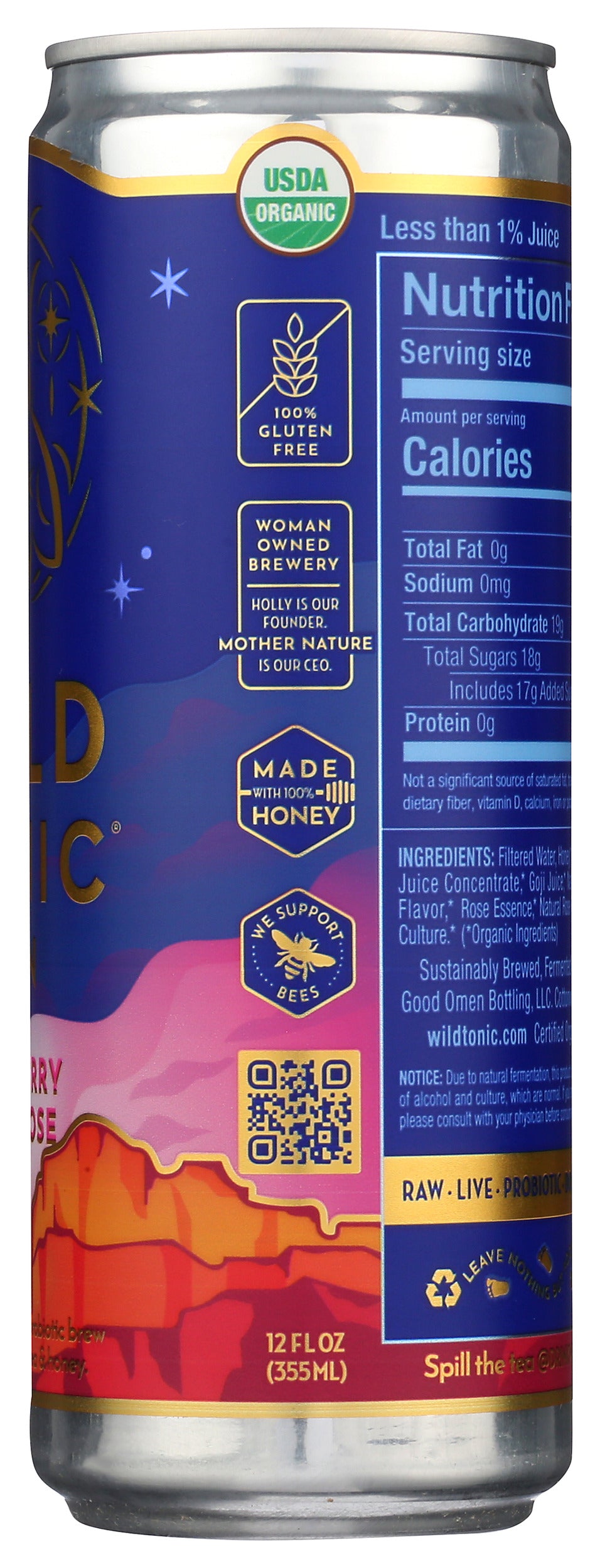 Wild Tonic, Kombucha Raspberry Gogi Rose Organic 12 Foz, 6 Pack