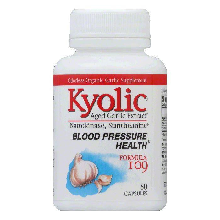 Odorless Organic Garlic Supplement. Nattokinase, suntheanine. Blood pressure health. Kyolic Aged Garlic Extract begins with 100% organically (In compliance with the California Certified Organic Farmers) grown garlic bulbs. Kyolic Formula 109 contains a unique and natural combination of Nattokinase and Suntheanine with aged garlic extract to help relax and support healthy blood pressure through different pathways. Clinical studies have shown these ingredients can help support healthy blood pressure levels. Free of: Sodium, yeast, dairy, preservatives, sugar, gluten, artificial colors or flavors. GMP certified. (These statements have not been evaluated by the Food and Drug Administration. This product is not intended to diagnose, treat, cure or prevent any disease.)