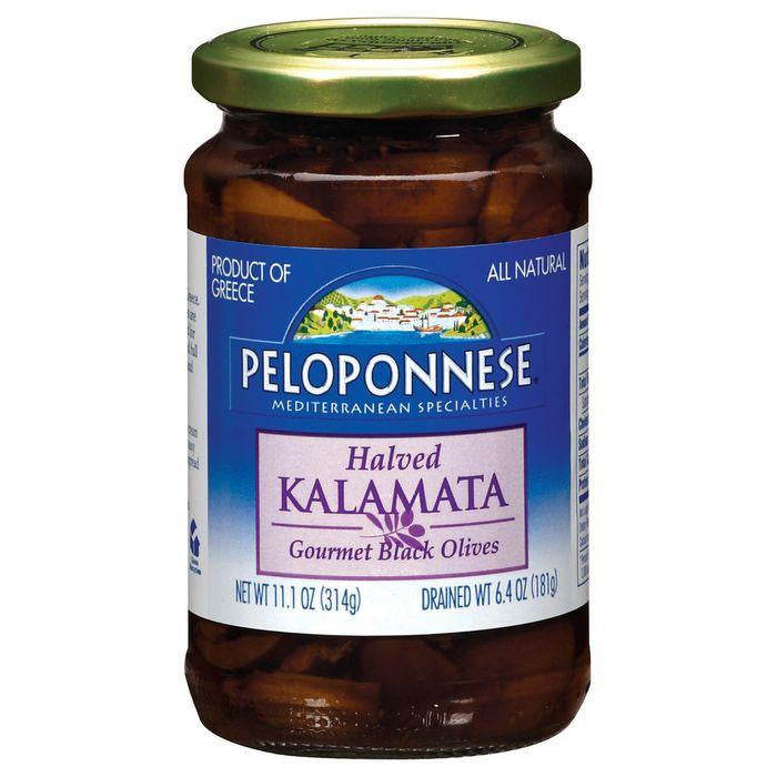 Peloponnese olives and vegetables (pell-uh-puh-neese) are all grown on family farms in greece. Our authentic halved kalamata olives are tree- ripened and naturally brine-cured for the purple-black color, firm texture and full flavor. Even our brine (sea salt, water and sweet wine vinegar) is delicious. Try our halved kalamata olives: in salads, soups & stews; in hot or cold pasta dishes; chopped in dressings and vinaigrettes; added to cream cheese for easy sandwich spread.